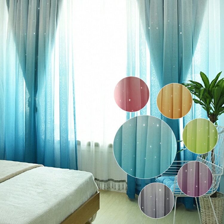 【2020.06.06 15時〜2020.06.11 01時 クーポンで15%OFF】【送料無料】カーテン 姫系 グラデーション ドレープ・レースカーテン 透かし彫り 星柄 遮光カーテン 厚地 遮光80% 1cm刻みのオーダー可能 断熱効果 洗える 豊富な色 6種類 両開き 片開き【2倍ヒダ】