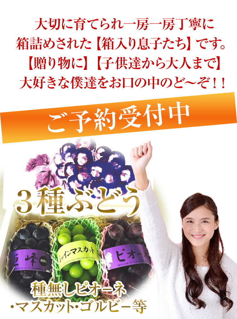 《葡萄祭り》【最高級3種ぶどう化粧箱】種無しピオ−ネ・マスカット・ゴルビ−等【送料無料−ク−ル便】《果物 詰め合わせ》《フルーツ 盛り合わせ 》《法事 お供え 》巨峰・ナガノパ−プル・クインニ−ナ・等々