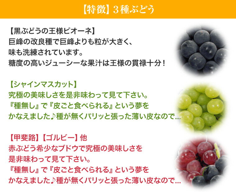 原産地 大粒葡萄3種類【山梨】 原材料内容量 化粧箱込みで約1.5K〜2K時期によって多少前後いたします。
