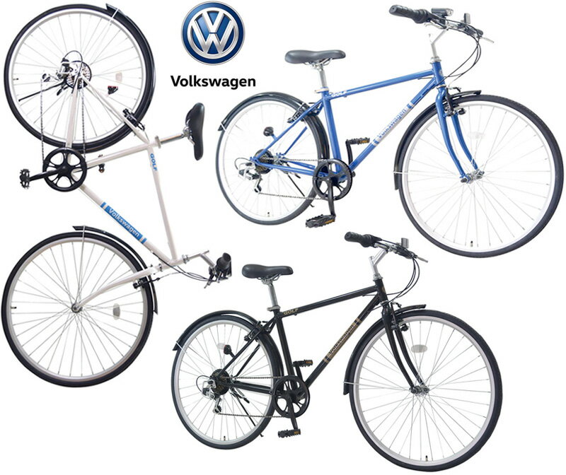 Volkswagen フォルクスワーゲン700C 約27インチ自転車クロスバイク スポーティースタイルオシャレなクラシックフレームブラック ホワイト ネイビーシマノ製6段変速ギア&泥除け標準装備シティーサイクル フラットバー仕様